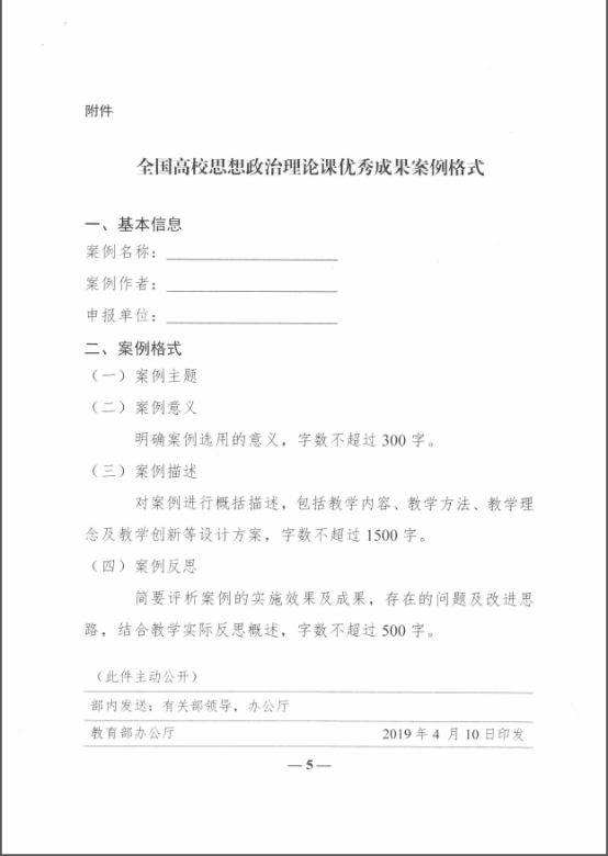 二、各高校全国高校思想政治理论课优秀成果案例格式118优秀案例报送省教育厅思政处,每校限1,拥有重点马克思主义学院或重点思想政治理论课教学科研机构的高校可报2项。