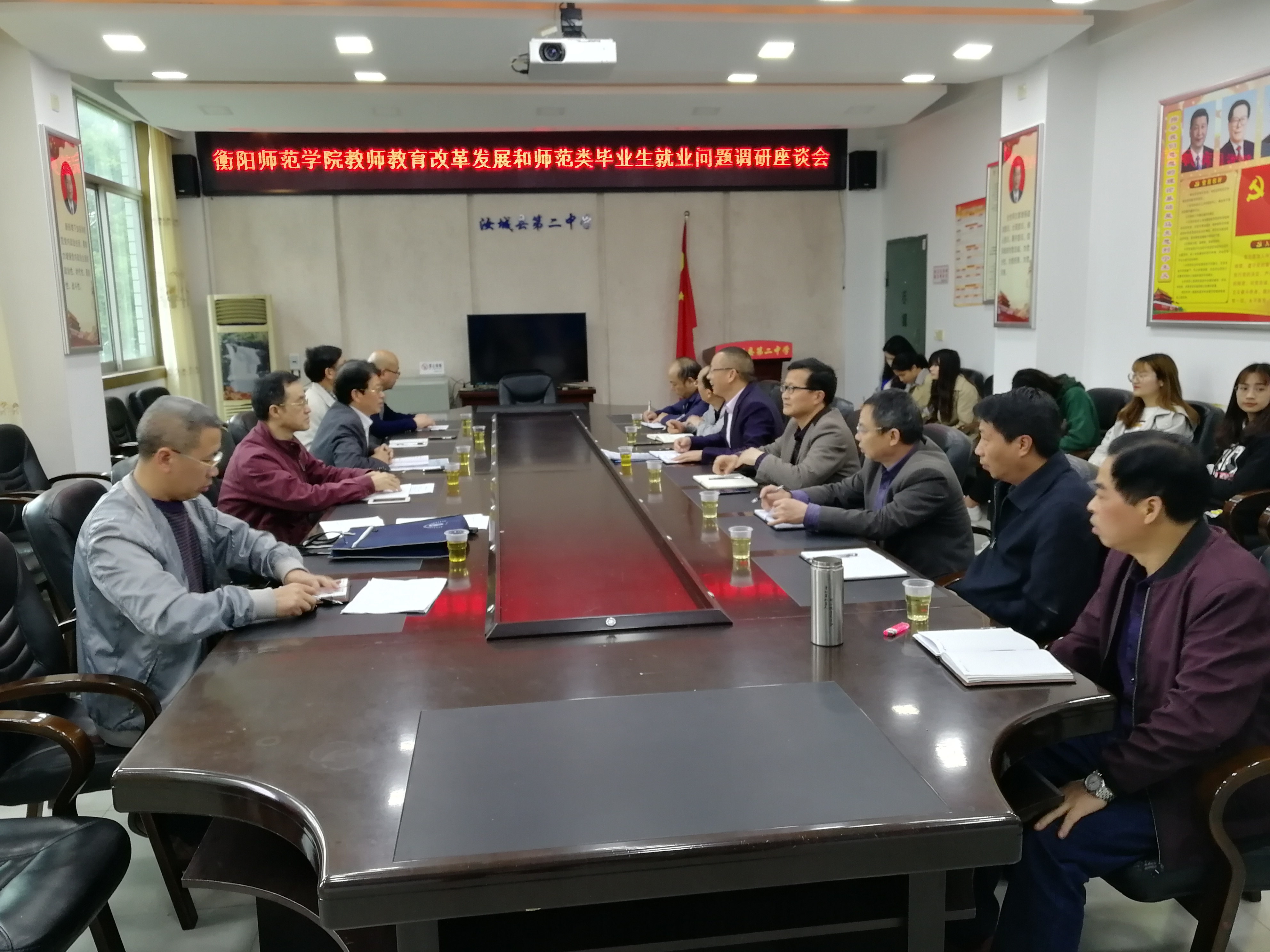 为落实吴桂英副省长关于师范专业毕业生就业、教师教育的改革发展问题调研任务的指示,201956-8日,副校长张登玉带领校党政办公室主任邓双喜、教务处和教育科学学院相关专家,围绕师范生就业和教师教育改革主题,到湘南学院、郴州市教育局、汝城县第二中学、安仁县教育局、安仁县第一中学等单位考察调研,并走访了sjb官网顶岗实习学生。