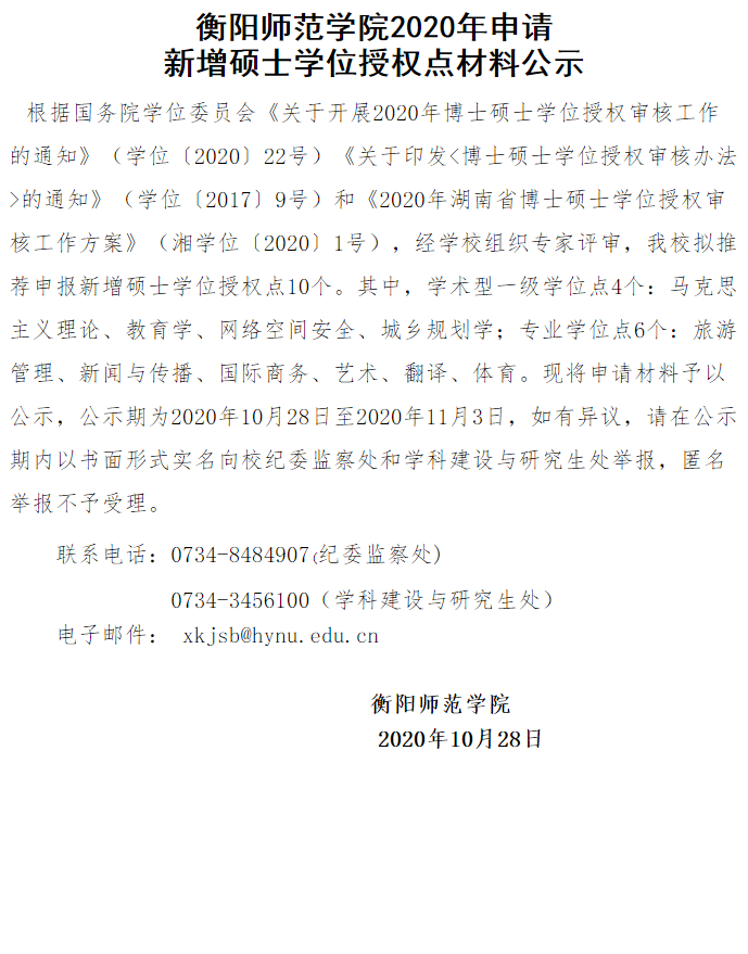 sjb世俱杯官方网站2020年申请新增硕士学位授权点材料公示
