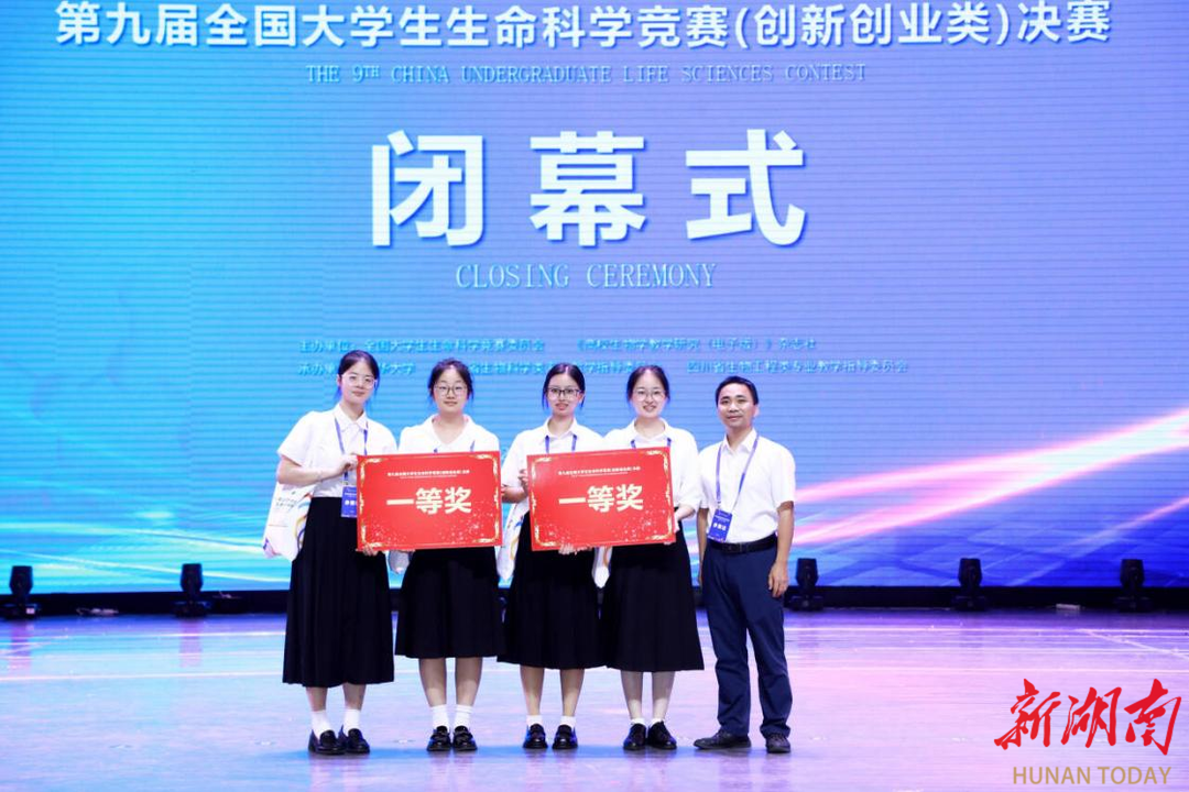 团队获第九届全国大学生生命科学竞赛一等奖,左一为唐艺彤